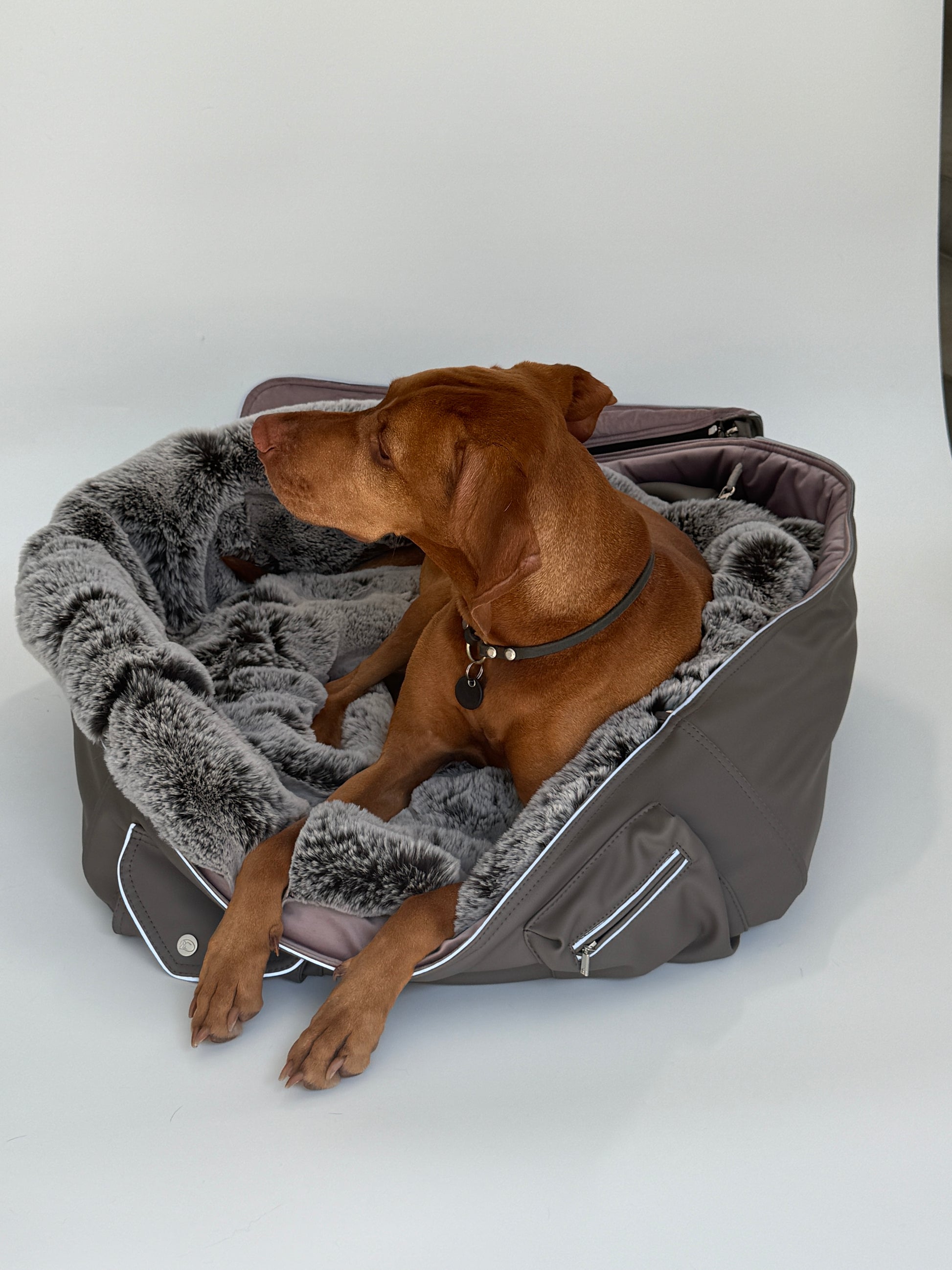 The Chayas Weekender is more than a dog carrier. It is a home to take with you — a mobile retreat, handcrafted with uncompromising attention to material, function, and form. For those who value not only closeness, but comfort and protection.